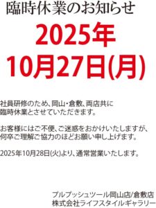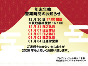 臨時休業のお知らせ。岡山店・倉敷店(買取専門店)